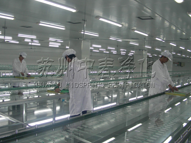 根據(jù)蘇州中春凈化科技有限公司提供的資料顯示:食品凈化車間面積應(yīng)與生產(chǎn)相適應(yīng),布局合理,排水暢通;車間地面用防滑、堅(jiān)固、不透水、耐腐蝕的材料修建,且平坦、無(wú)積水、并保持清潔;車間出口及與外界相連的排水、通風(fēng)處裝有防鼠、防蠅、防蟲設(shè)施。