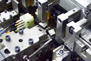 1)方形齒條進具,特殊材料的精密夾具,中心線準確,規(guī)格更換更方便,產品無夾傷,成型模具一體化,成型尺寸準確,卸裝迅速;