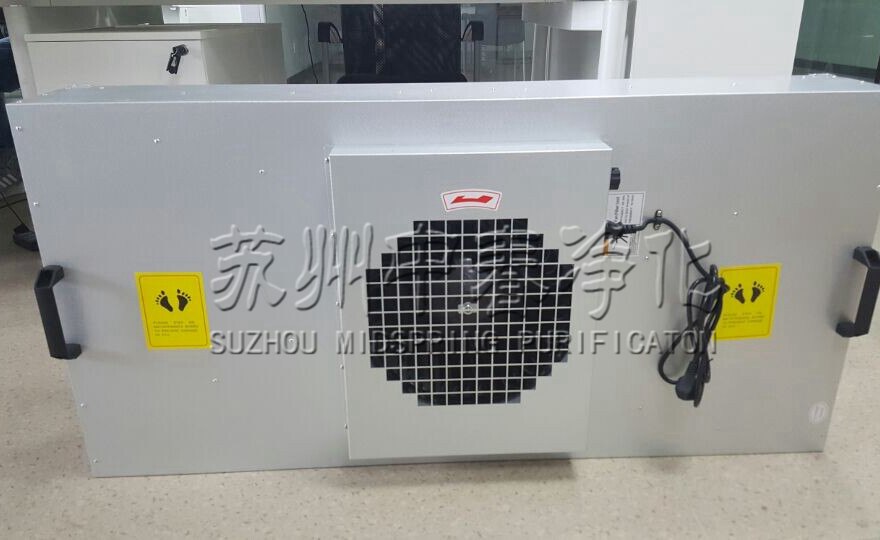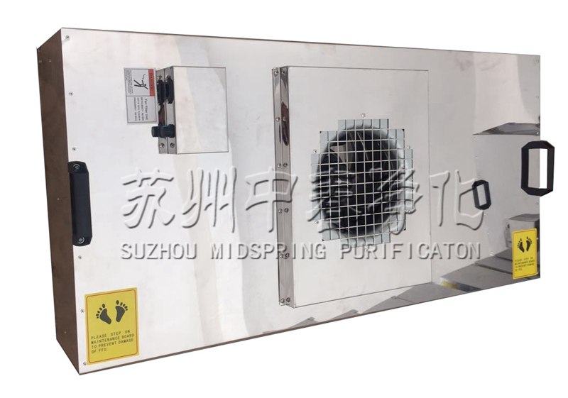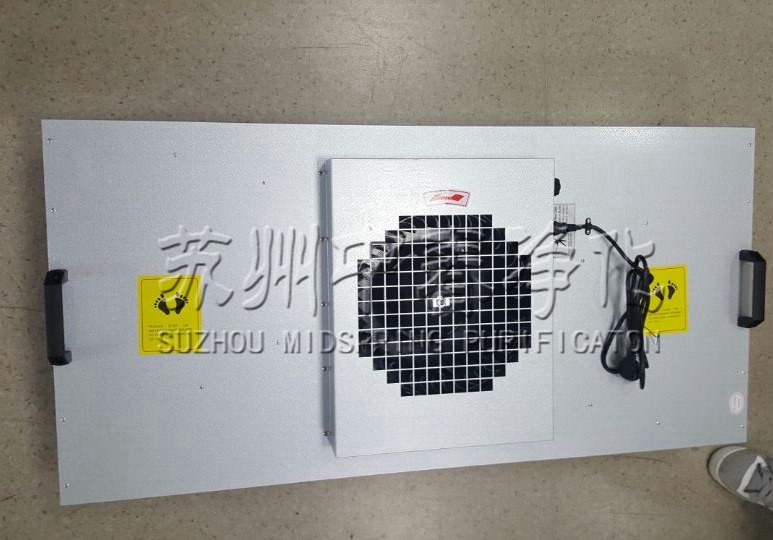 風(fēng)機(jī)過濾機(jī)組(FFU)設(shè)有初、高效兩級過濾網(wǎng)。風(fēng)機(jī)從FFU頂部將空氣吸入并經(jīng)初、高效過濾器過濾,過濾后的潔凈空氣在整個(gè)出風(fēng)面以0.45-0.65m/s ±20%的風(fēng)速勻速送出。