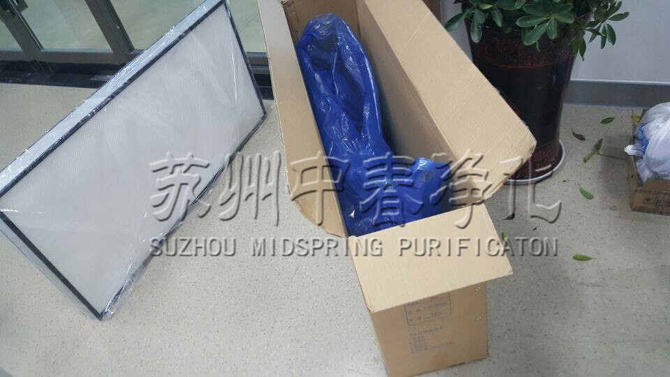 說明:風(fēng)機(jī)過濾機(jī)組(FFU)設(shè)有初、高效兩級過濾網(wǎng)。風(fēng)機(jī)從FFU頂部將空氣吸入并經(jīng)初、高效過濾器過濾,過濾后的潔凈空氣在整個(gè)出風(fēng)面以0.45-0.65m/s ±20%的風(fēng)速勻速送出…